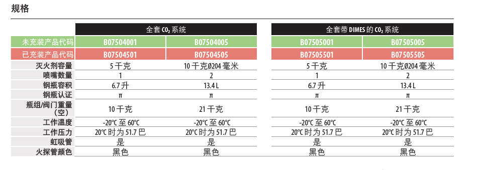- 提供多种瓶组,用于小型或中型密闭空间